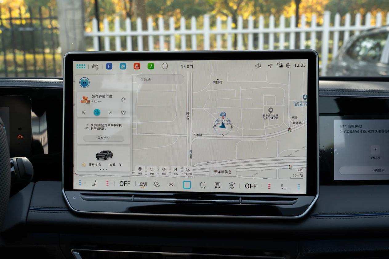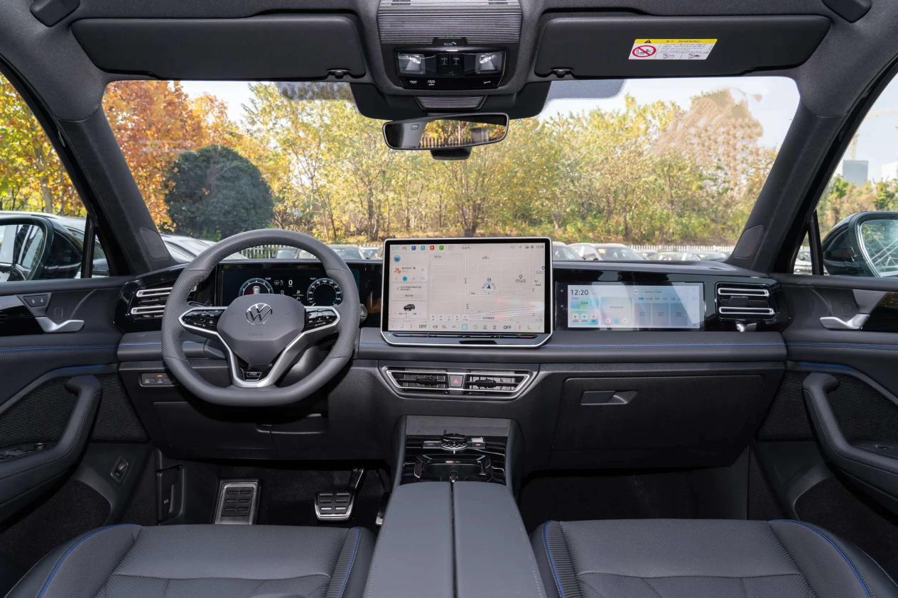 途观L的内饰有种舒适、精致的氛围感,三幅式方向盘采用皮质材料,而附带的加热功能,对北方用户很友好,旋钮式怀挡的设计,也为驾驶者操控,提供了便利性。10.3英寸的全液晶仪表盘,搭配15英寸中控屏,进一步强化了车内的科技氛围,其中中控屏采用12G+128G的内存预置,并有高通骁龙8155芯片的加持,像5G网络、手机互联映射、应用下载等功能悉数支持,它的语音识别区域仅覆盖前排座椅,但能实现可见即可说。其次,车内还配备了30色氛围灯、40W手机无线充电面板等配置。