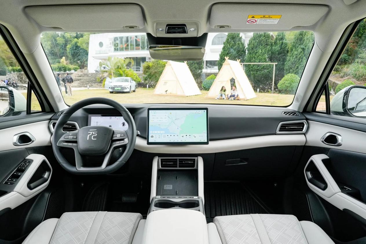 再从智能座舱来看,如果单论科技调性,作为2025年度新车的长安启源全新Q05,的确比元UP内饰设计更有说服力。另外,长安启源全新Q05中控屏尺寸为15.6英寸,元UP则为12.8英寸。