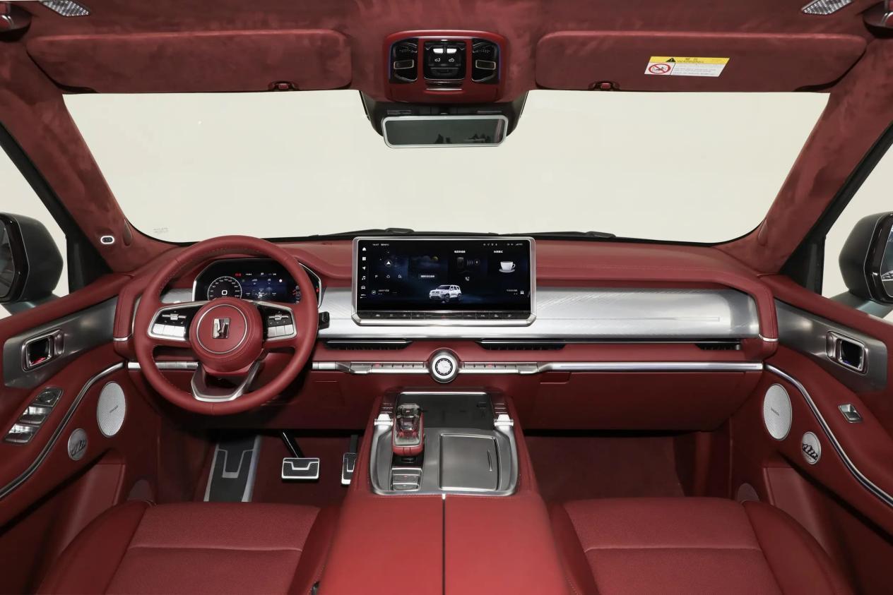 车内配备了皮质多功能方向盘,除了可以上下+前后调节,还附带记忆、加热、换挡等功能,作为一款硬派SUV,它采用的是具备一定操控乐趣的电子挡把。车机方面,坦克700 Hi4-T配备了12.3英寸全液晶仪表盘、16.2英寸中控屏、HUD抬头显示系统,其中中控屏具备语音识别、应用下载、OTA升级等功能,语音识别功能覆盖前两排座位,入门款还支持4G车联网,中、高配支持5G车联网。新车全系支持L2级辅驾,辅驾硬件涵盖了雷达和摄像头,数量最多达到了29个,全系支持透明影像、自动辅助泊车入位、循迹倒车等功能,中、高配还多高速领航、匝道自动驶入(出)等功能。